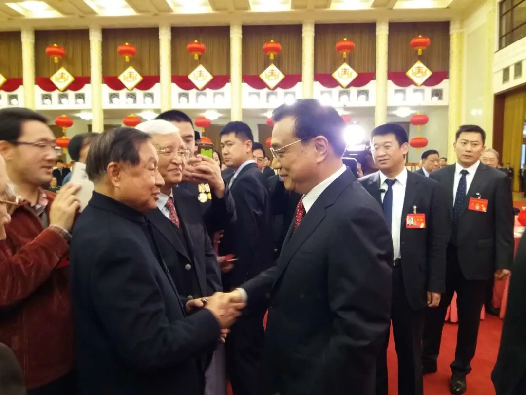 2016年春節(jié)團拜會上,李克強總理與高尚全握手