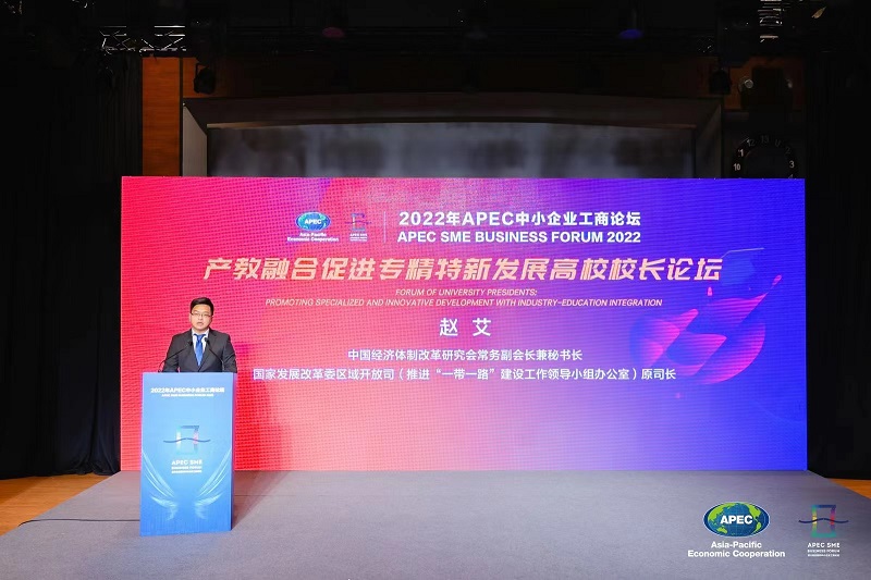 我會常務副會長兼秘書長趙艾應邀出席于2022年12月22日下午在京舉辦的2022APEC中小企業(yè)工商論壇并在產(chǎn)教融合促進專精特新發(fā)展高校校長論壇上發(fā)表致辭演講。
