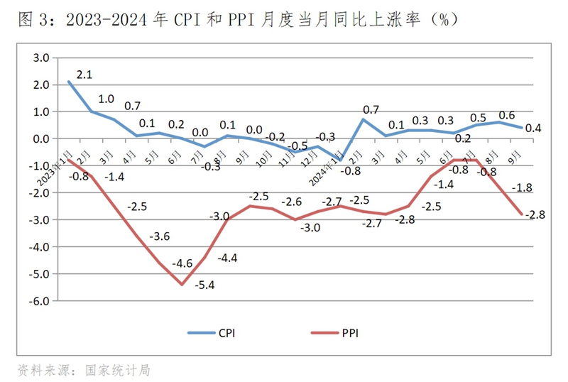 1-9月份PPI同比下降2.0%,比上年同期下降3.1%收窄了1.1個百分點,比上半年下降2.1%收窄了0.1個百分點,。PPI降幅雖然有所收窄,但降幅仍還不小,特別是近兩個月又出現(xiàn)了比前期擴(kuò)大的現(xiàn)象。