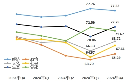 中國經(jīng)濟體制改革研究會“改革熱度指數(shù)”課題組認(rèn)為,面對當(dāng)前外部環(huán)境變化帶來的不利影響加深,我國經(jīng)濟運行仍面臨不少困難和挑戰(zhàn),但我國經(jīng)濟基礎(chǔ)穩(wěn)、優(yōu)勢多、韌性強、潛能大,長期向好的支撐條件和基本趨勢沒有變。從改革熱度指數(shù)看,政治、文化、社會、生態(tài)領(lǐng)域熱度值提升,經(jīng)濟、黨建領(lǐng)域熱度值和宣傳度熱度值略有下降,四季度改革熱度指數(shù)依然保持高位運行。2025年是貫徹黨的二十屆三中全會精神的重要一年,隨著各項改革逐步推進、一攬子增量政策落地見效,必將為高質(zhì)量發(fā)展和推進中國式現(xiàn)代化提供更有力的支撐。