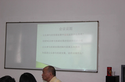 出席會議的代表有:社區(qū)行動服務(wù)中心的宋慶華、王瑞卿、綠色和平組織的徐曼、中國綠色碳匯基金會的蘇宗海、樂施會的呂美、北京地球村環(huán)境教育中心的王欣超、中國民促會綠色出行基金的費軼群和任慧、北京理工大學管理與經(jīng)濟學院的李亞教授、中國經(jīng)濟體制改革雜志社的記者張?zhí)m太等。我會《低碳發(fā)展公眾參與的政策設(shè)計》課題組成員趙迪、何林也出席了會議。